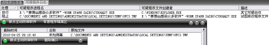微点主动防御软件 (手动放行+拦截未知后门+拦截可疑行为)删除确认: