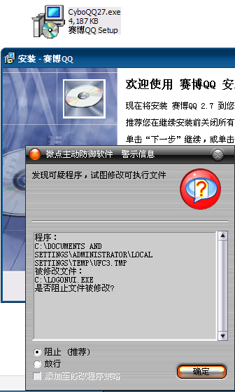 #1 网友爆料:“赛博QQ感染众多软件”!微点拦截未知后门