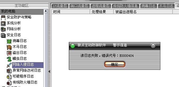 读日志失败,错误代号:E0000404昨天刚安装微点没有问题,