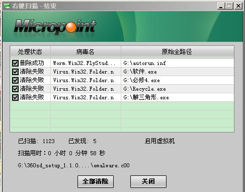 1、手动扫描:微点杀毒能发现病毒。