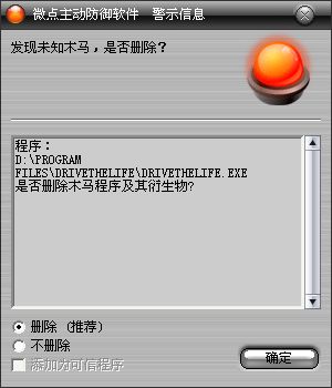 运行驱动人生不会报,但用驱动人生更新驱动却会报为未知木马,选择不删除后重新运行驱动人生发现驱动没有更新成功,无奈只好关掉微点监控才更新成功