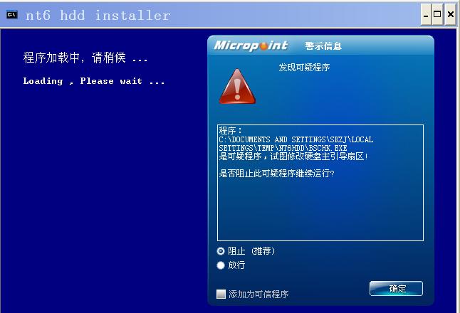 不知道你这个是否是官方版本?如果是官方版本可能是微点没收到已知程序库中。未知程序修改MBR,微点是单步拦截的。所以才会报可疑