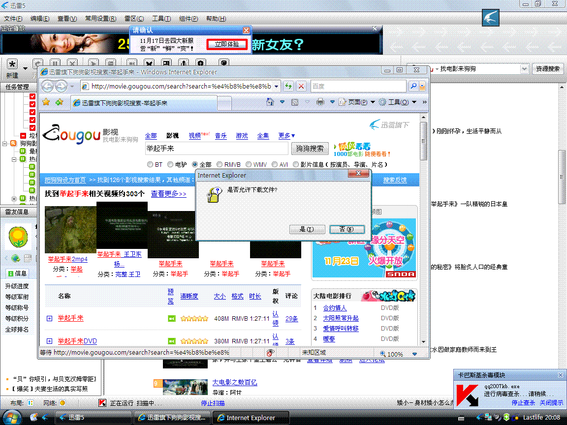 现在我一用迅雷的搜索功能就弹出对话框问是否允许下载文件?