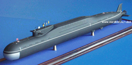 俄罗斯新一代955型战略导弹核潜艇模型。本报资料图