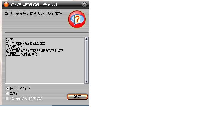 根据楼主提供的报警图分析,该情况是由于您所使用的同城游程序试图修改某个驱动文件(从文件名判断可能是腾讯QQ的键盘加密保护程序)导致。