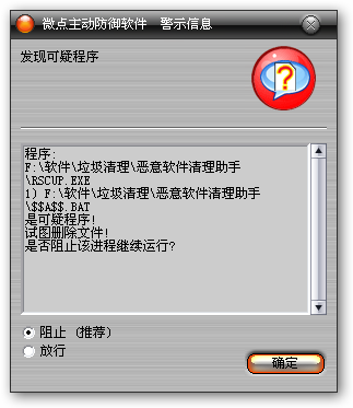 谢谢楼主的反馈。您的情况可能是恶意软件清理助手在升级时使用批处理文件删除某些程序,微点对此进行提示。如果您的软件是官方下载版本,您可以选择放行。