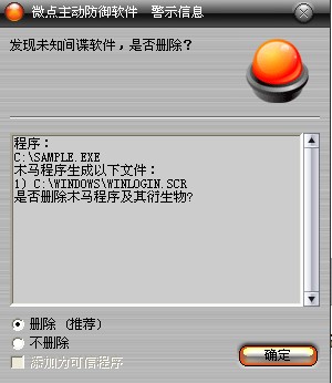 图1 微点主动防御软件自动捕获未知病毒(未升级)