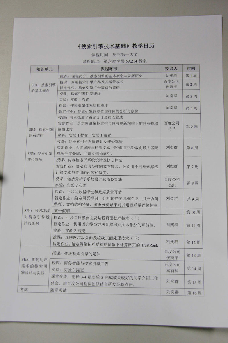 从朋友那儿看到的一张搜索引擎的课表,他是清华计算机系的。代课老师中居然很多都是百度的工程师!