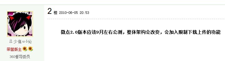作者: 点饭的百度空间 时间: 2010-6-20 00:30 标题: 360论坛:微点2.0预计九月公测