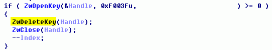 ZwOpenKey、ZwEnumerateKey、ZwDeleteKey