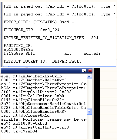 没事检查一下微点的驱动,,发现mp110008.sys存在bug,,,