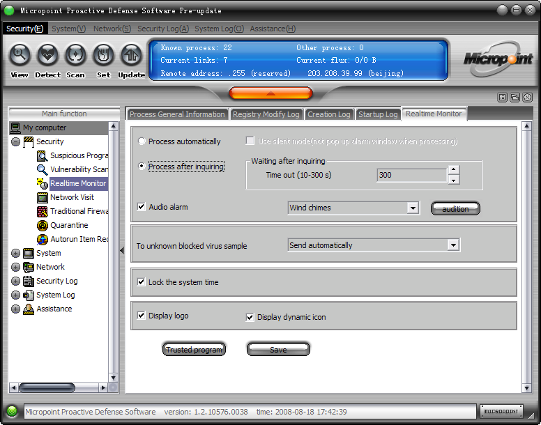 微点试用版预升级应该都可以硬防 还记的当年的“冲击波”病毒吗? 在不安装更新微软Windows漏洞补丁的情况下,第一时间微点主动防御软件就能够抵挡威胁!!