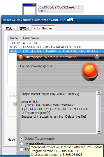 Our Micropoint protect us against Microsoft Security Hole-MS08067