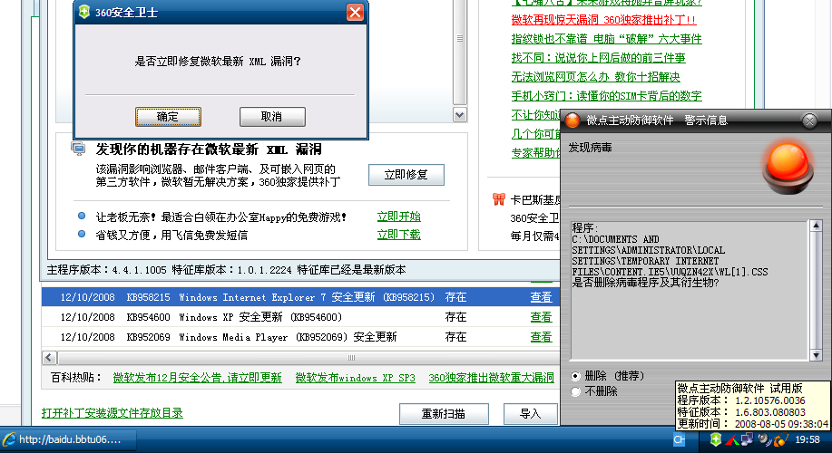 #1 微软IE XML漏洞暂无补丁危及全线系统 "微点保护微软" 截杀黑客未知木马