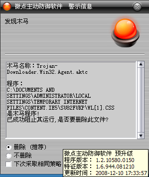 微点主动防御软件 试用版 更新时间:2008-08-05 09:38:04
