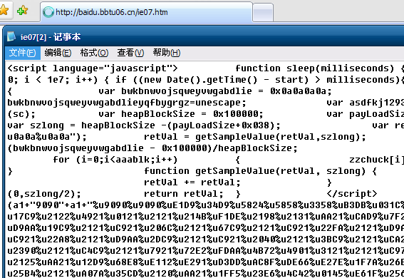 网页被挂IE高危0day漏洞 hxxp://baidu.bbtu06.cn/w63/../ie07.htm