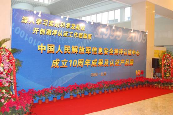 解放军信息安全测评认证中心成立10周年成果及认证产品展于2009年8月18日-19日,在远望楼宾馆(总装第一招待所)4楼阳光展厅举行。