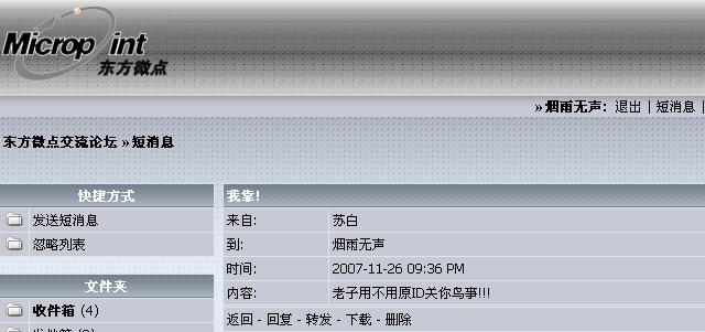 很久没上微点论坛来了,结果今天一上来发现有个消息未读,居然还是苏白发给我的!我很是不明白为什么他会给我发消息呢?我好奇的打开了消息,可是看到消息后我很怒,居然是骂我的!给大家截个图看看~