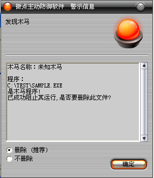 图2 微点主动防御软件升级后截获已知病毒