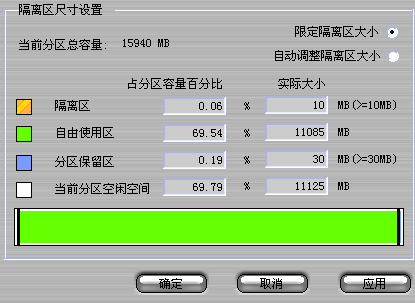分区保留区是设定磁盘分区保留的大小,是永远不被隔离区使用的地方。