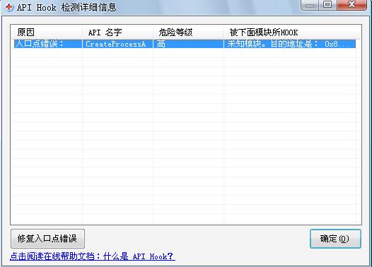 装了微点以后每次用sreng修复,就会出现这个《入口点错误:CreateProcessA (危险等级: 高, 被下面模块所HOOK:未知模块,目的地址是:0X849F695D