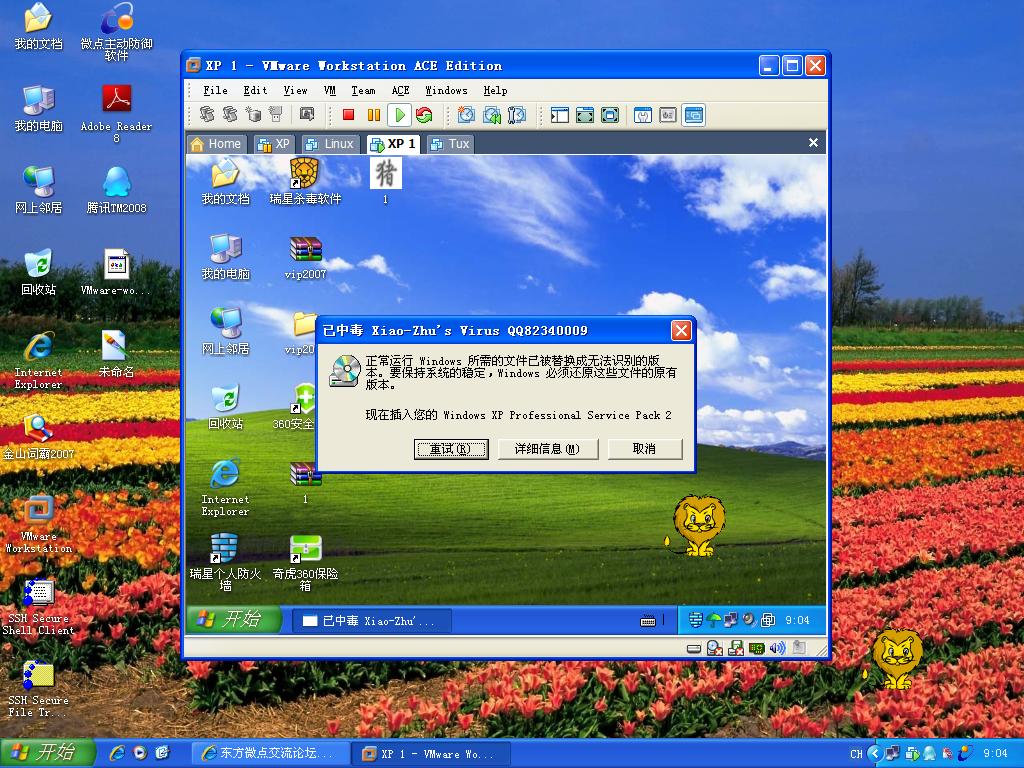 下载下来,在虚拟机里面安的X星2008,解压时没反应,双击运行,说“符合这条规则”,过了一会系统已经彻底中毒