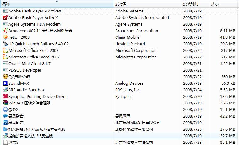 昨天用的时候没有那个SRS Audio Sandbox,下面还有一个有道没有列出来,就是这样了