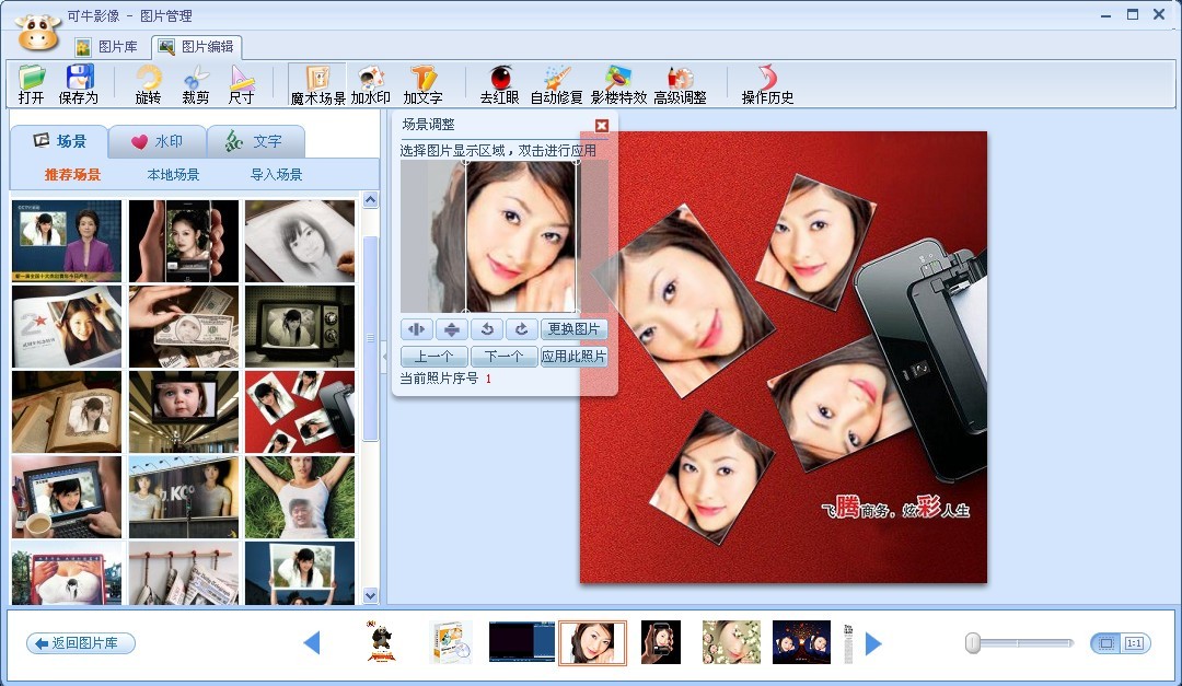 4.全面图片编辑,囊括裁剪、尺寸、各类高级调整等实用编辑功能.一键裁出QQ头像、MSN头像、身份证件照、护照、等常用照片尺寸。