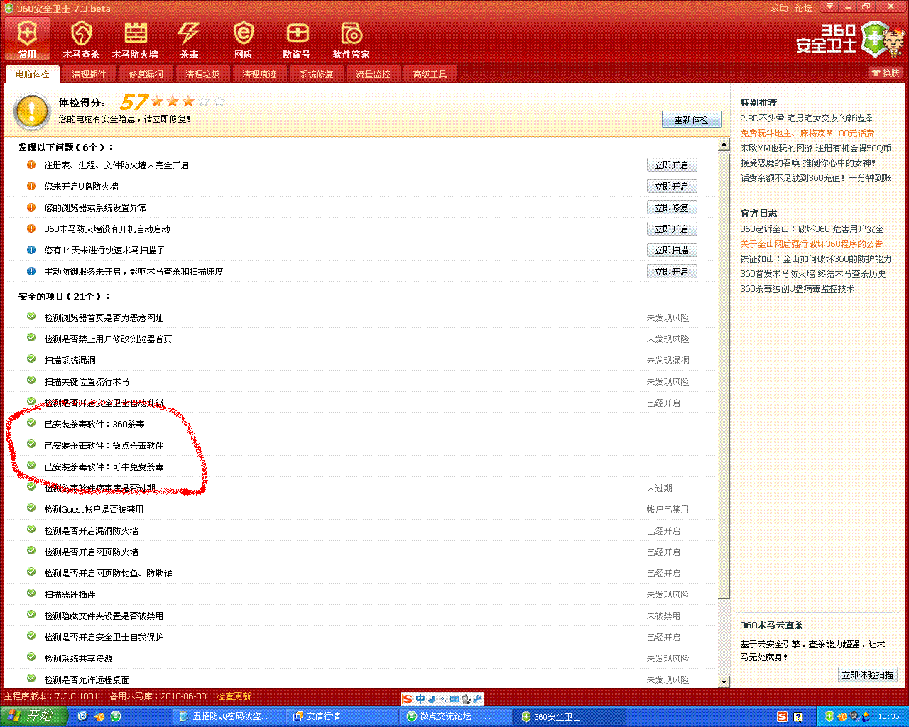 我是说360的“电脑体检”里,不承认微点杀毒软件,只认微点主防。
