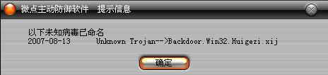 此提示信息为正常的,是微点主动防御软件通知用户您系统中检测到的未知病毒已经升级并且命名。