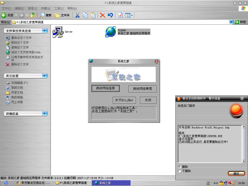 今天去风云墙下的测试带宽的软件 运行的时候发现微点报毒 但KAV无反映