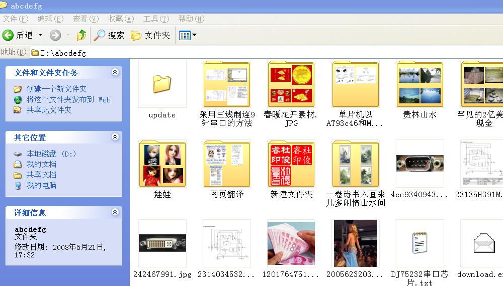 我转存在D盘[abcdefg]的文件夹中的东西图片文件夹,图片,记事本TXT文件,等...全部打开了也挪回来了.毫发无损我太高兴了!
