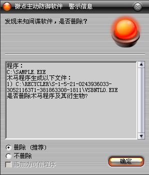 图1 微点主动防御软件自动捕获未知病毒(未升级)