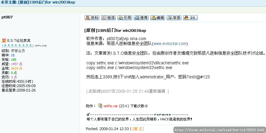 十三:已经很绝望,百度查不到任何该木马资料,杀毒软件杀不到,杀木马软件打不开!~于是,我四处找大论坛发帖求助,如:电脑爱好者,电脑报等,等了几个钟头,没有任何人帮我解决得该木马,看来是比较新的木马!~~