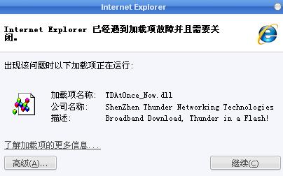 迅雷...不是吧     我昨天去把那个要加载的项给禁了   然后就好了