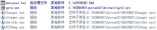 changer、i2omgmt、lbrtfdc、pcidump这4个sys文件是win系统文件,怎么会没有了呢?都没有了怎么还在自启动?
