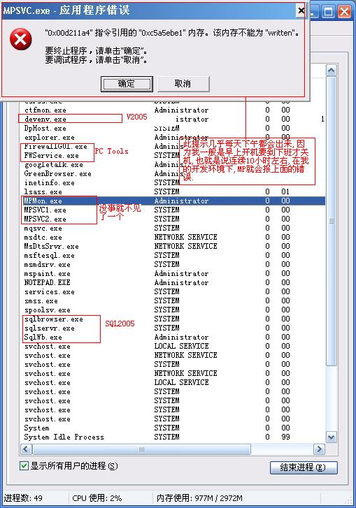 之前就反应过MP与VS2005,SQL2005之间似乎有点小问题,