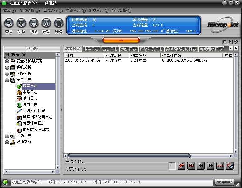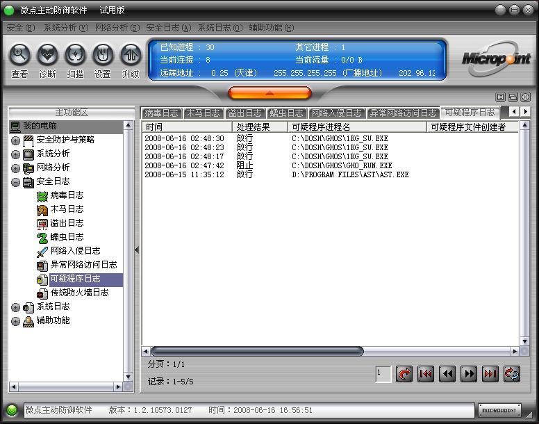 如果我记得没错,运行一键GHOST的时候微点是有可疑提示的,说是修改硬盘扇区!