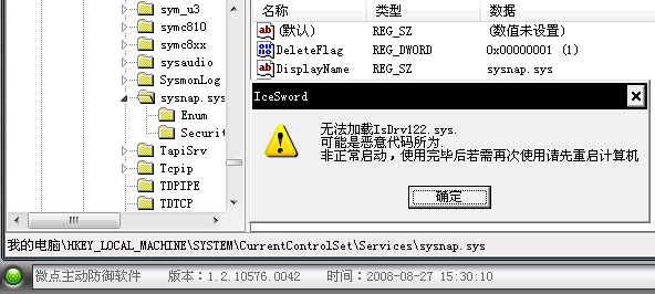 IS不用说...只是需要在加载我驱动前先运行IS....否则IS是运行不起来的...你可以发现IS这个时候很好笑....当然也可以干掉其他anti rootkit/////比如租剑//.........还有我是用进程判断的.....IS的名字必须是IceSword.exe