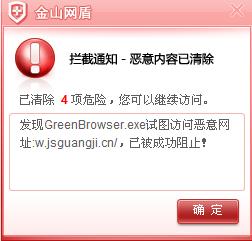 很显然有恶意代码,装个金山网盾都能拦截了,以下是金山网盾打开你那个网址的提示