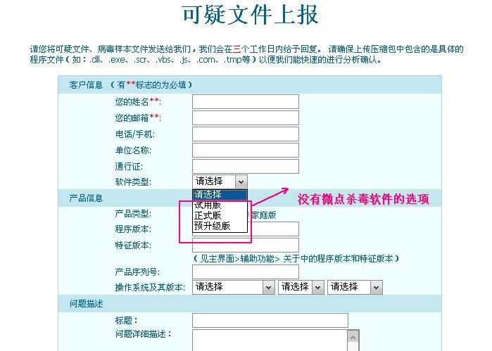 标题: 微点杀毒版可疑文件上报中官网的选项问题!