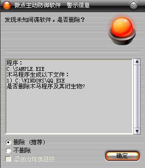 图1 微点主动防御软件自动捕获未知病毒(未升级)