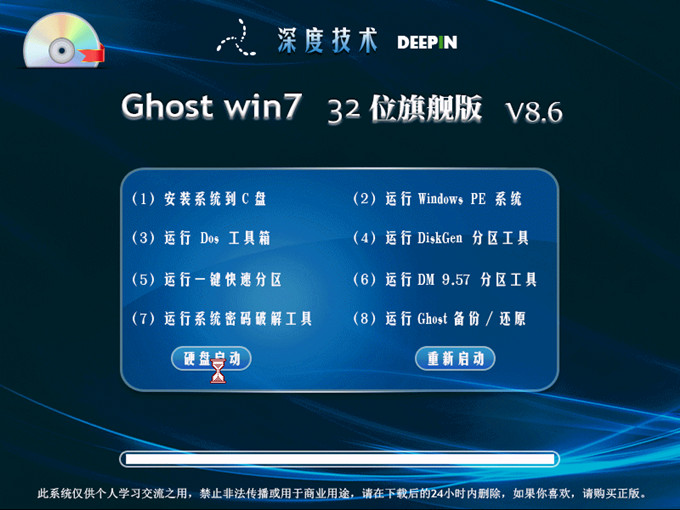 #1 深度技术 Ghost win7 SP1 32 位旗舰版 V8.6【最新系统】